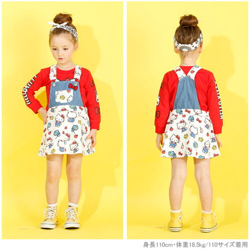 こども 子ども服 女の子 おしゃれ かわいい ジャンスカ ワンピース ミニ丈 オールインワン サロペット 人気キャラクターデザイン ハローキティ キティちゃん HELLOKITTY カジュアル ガーリー ガールズコーデ 合わせやすい オールシーズン キュート 重ね着 レイヤード 着回し抜群 総柄 デニム ★